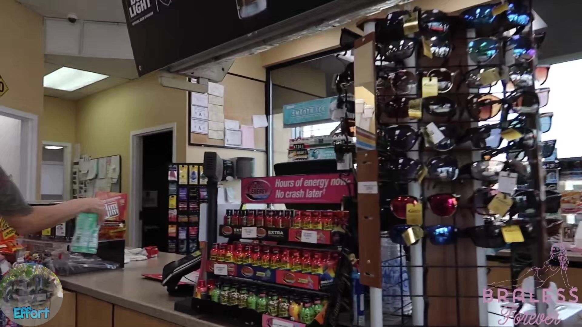 BralessForever hält zum Tanken für dieses öffentliche Video und trägt dabei ein durchsichtiges Oberteil und einen kurzen Rock, der ihre Oberschenkel zur Schau stellt.
