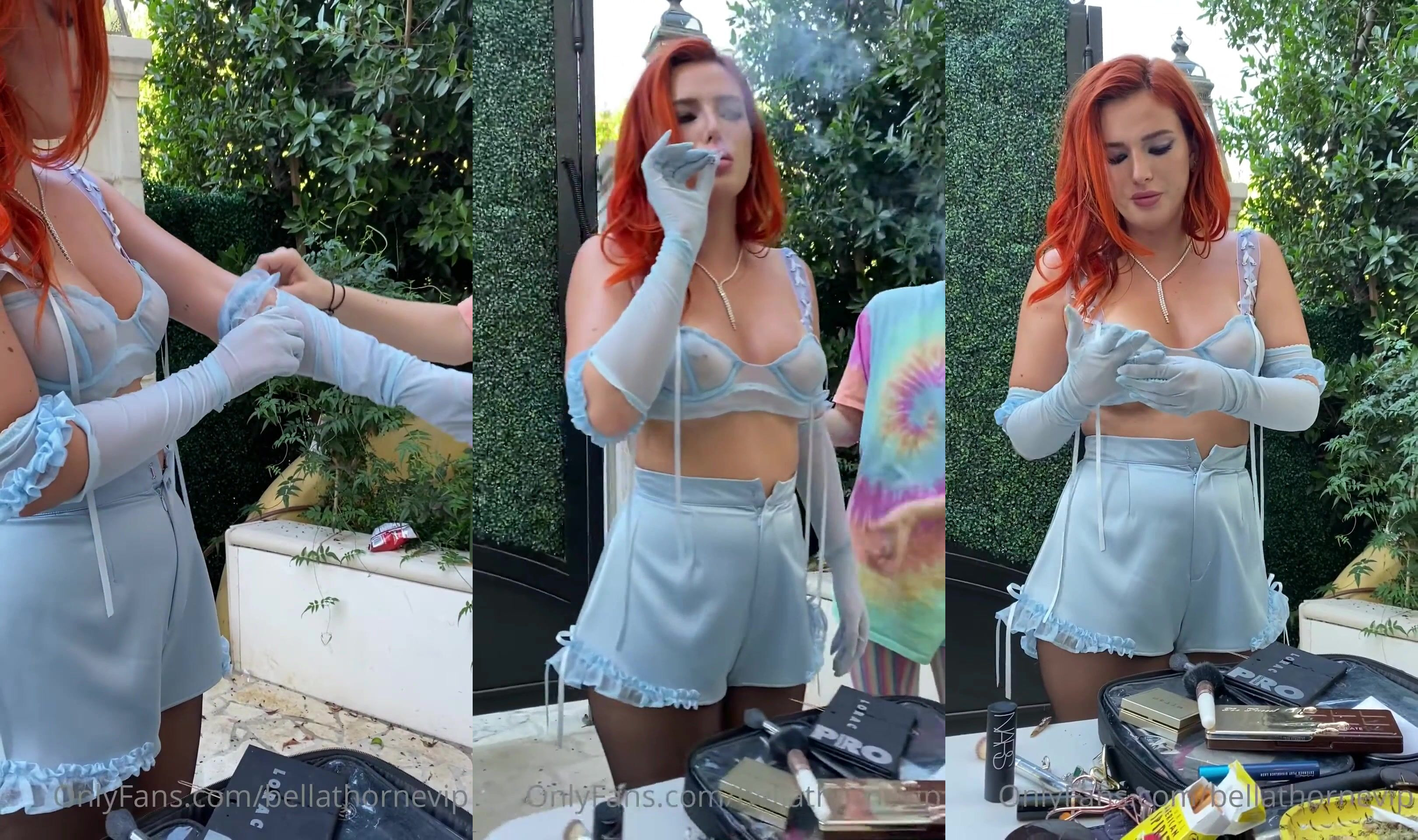 Bella Thorne__bellanippl heats things up in a sexy outfit while smoking outdoors in this steamy video.