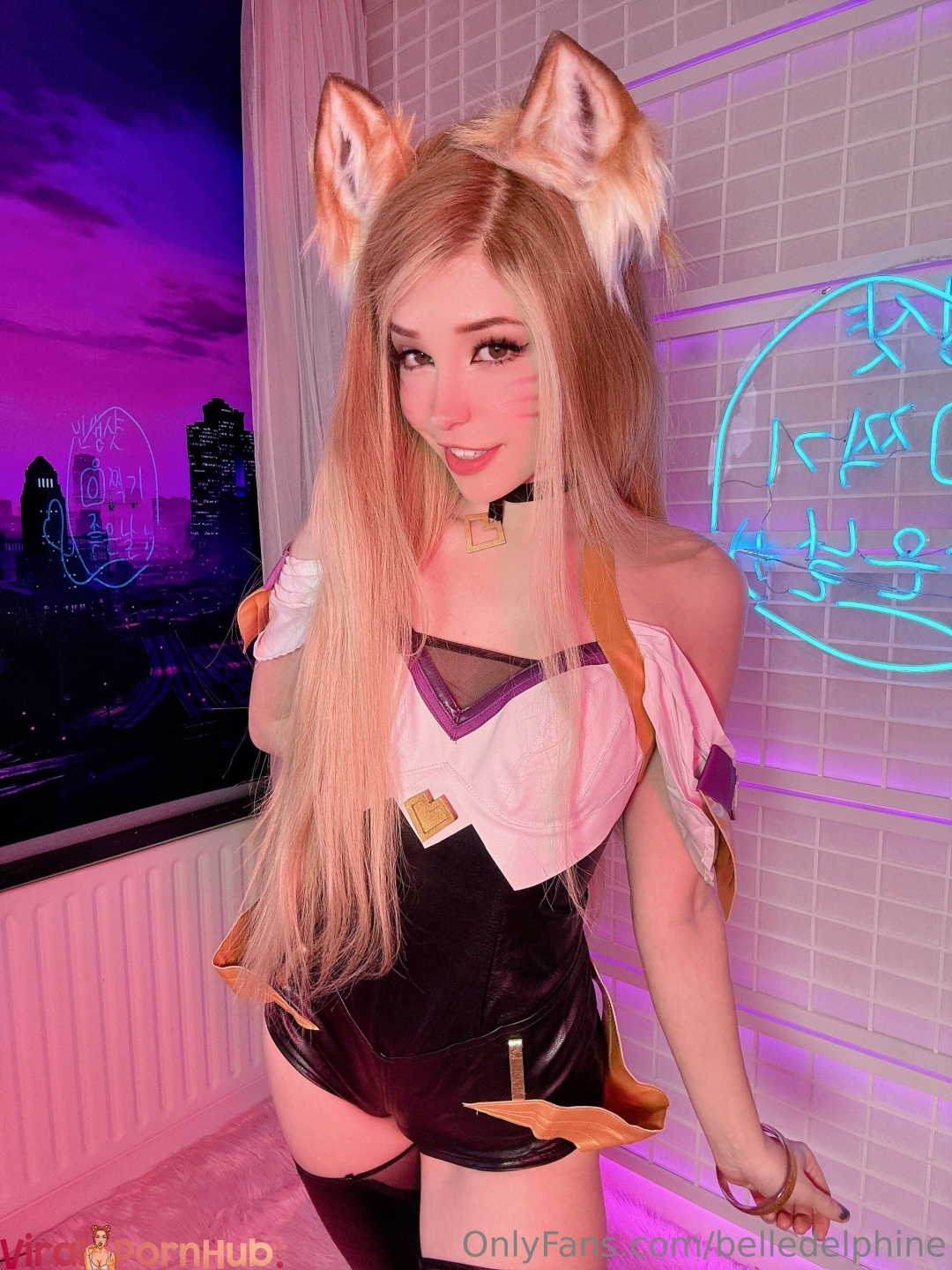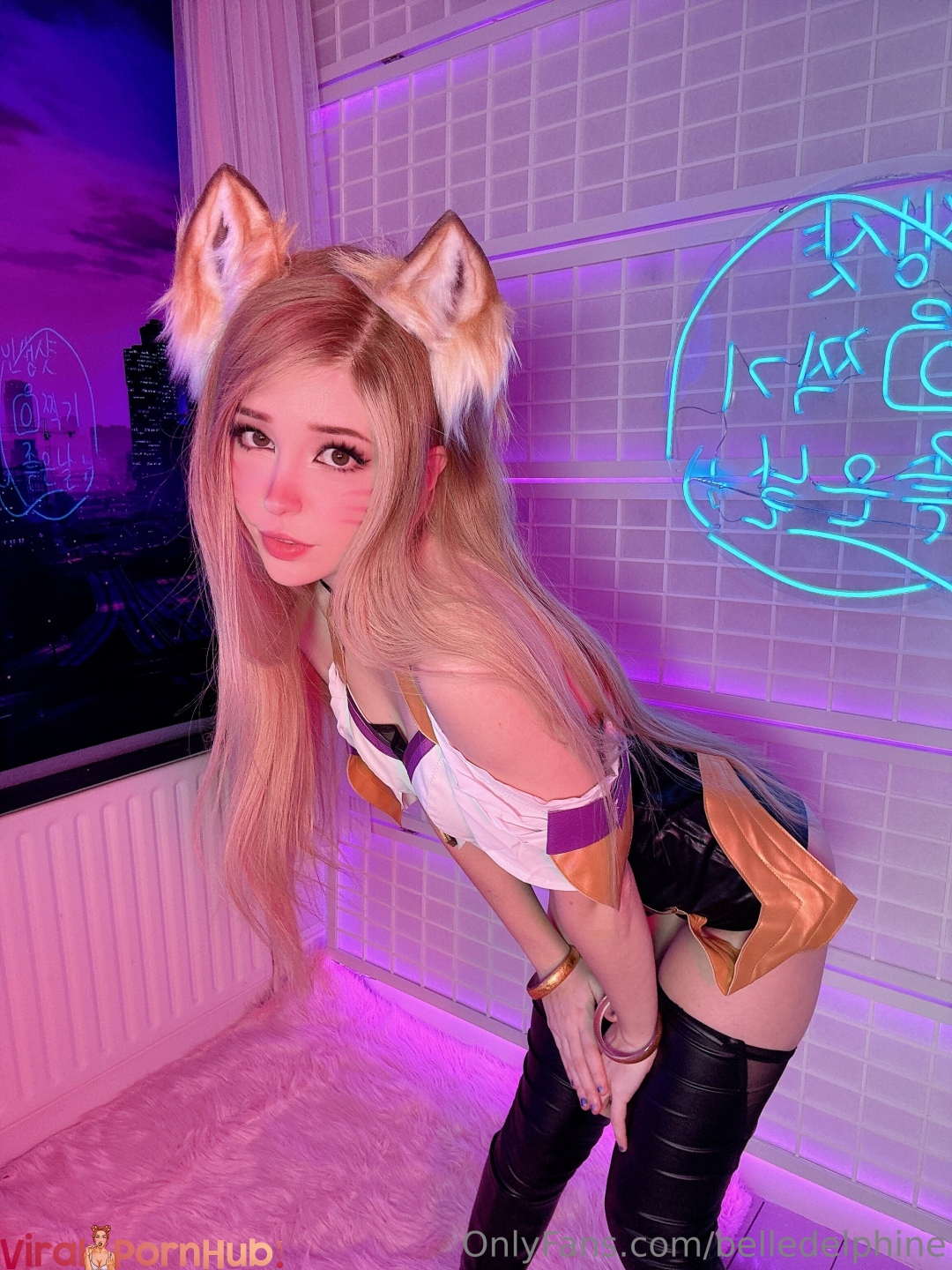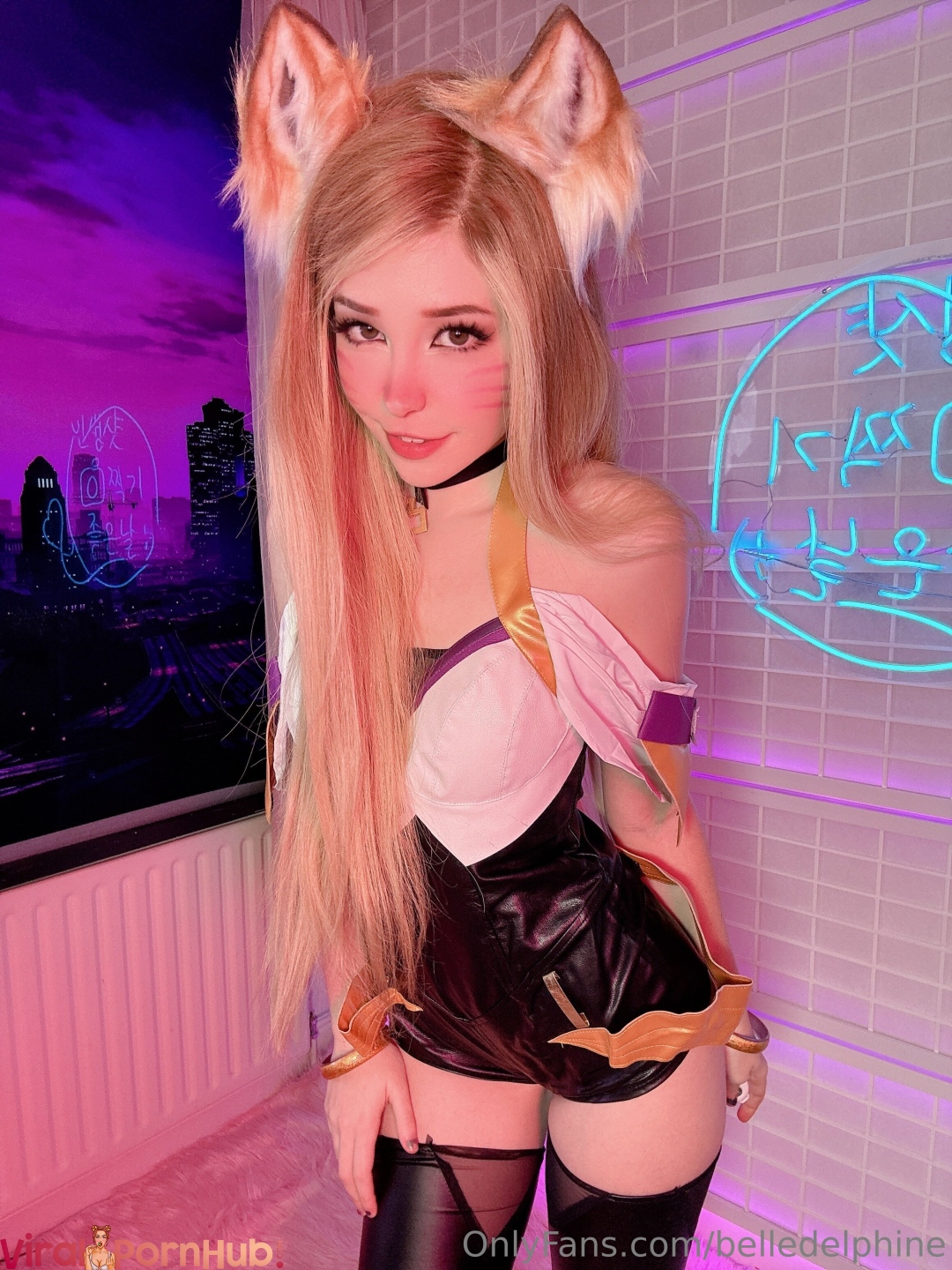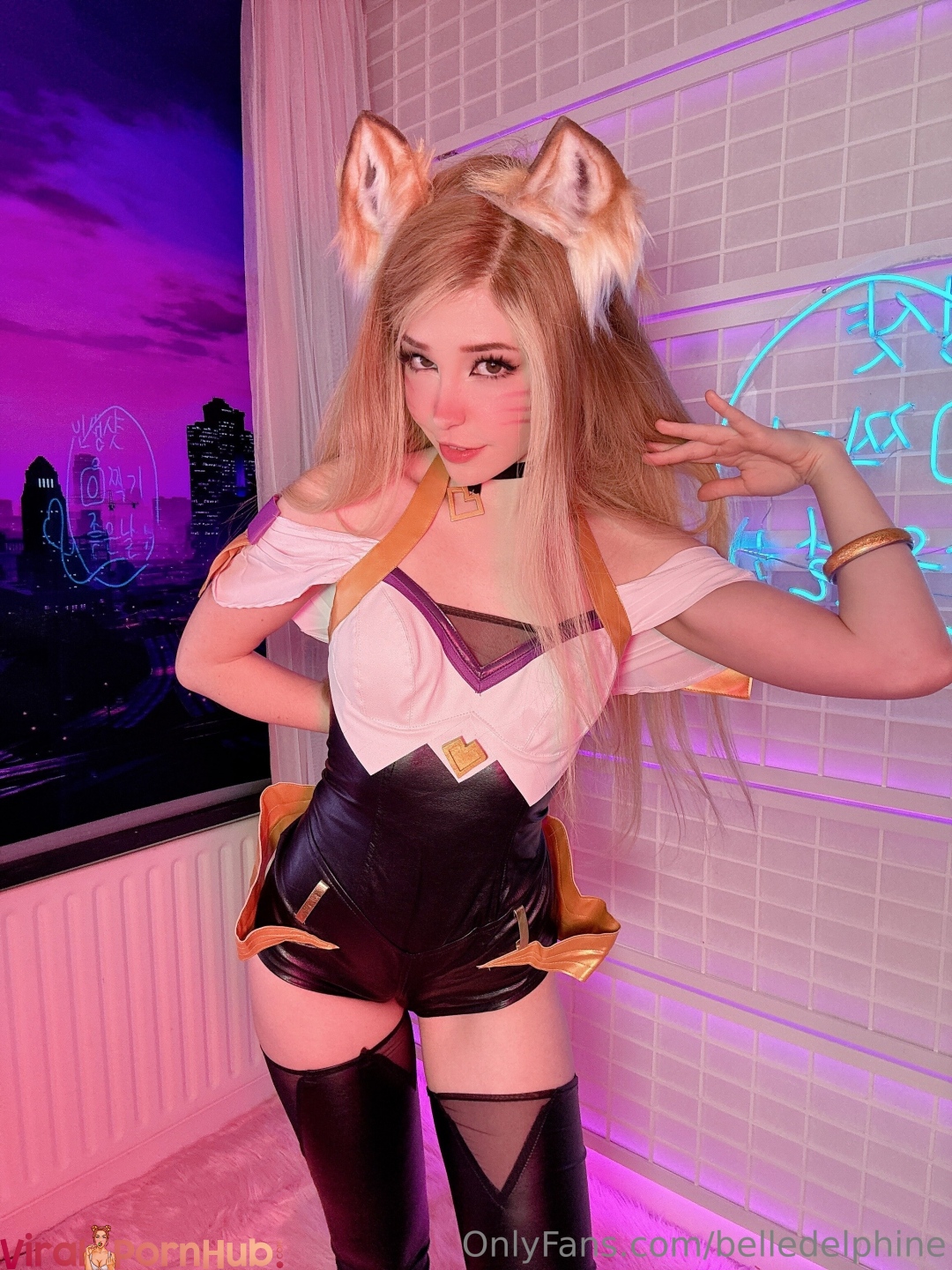 Белл Делфин делает косплей на персонажа Ари из League of Legends, раздвигая ноги и показывая свою голую вагину.