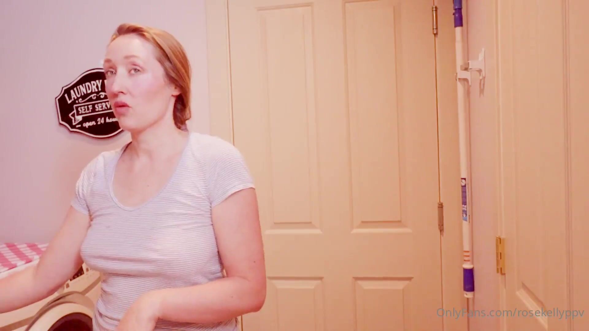 RoseKellyPPV turns laundry day into a steamy blowjob session, getting down on her knees in the laundry room and teasing with a deepthroat action