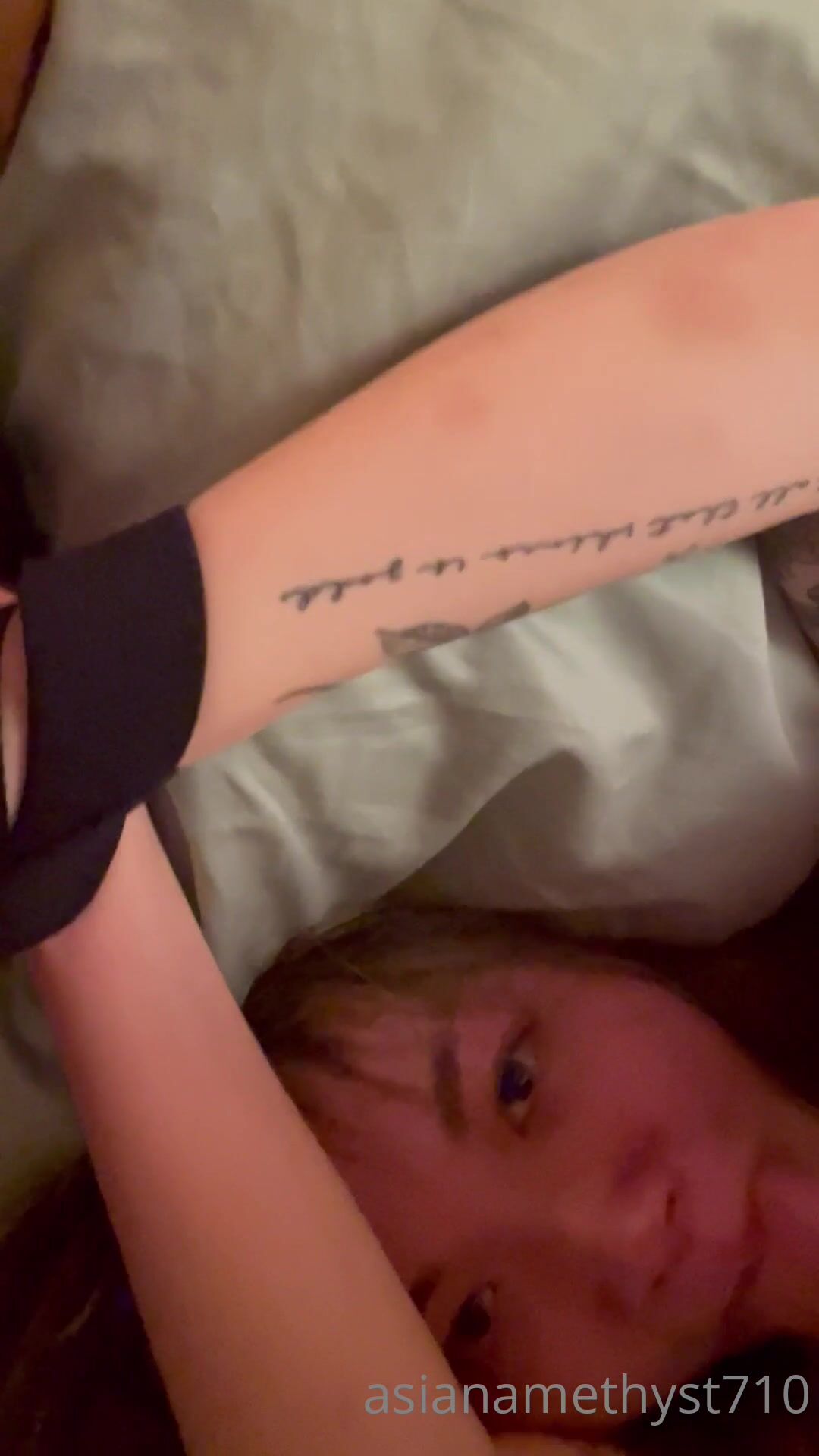 Asianamethyst710 Aka Asianamethyst Tied Up On Bed Sucking Balls And Cock Onlyfans Video
