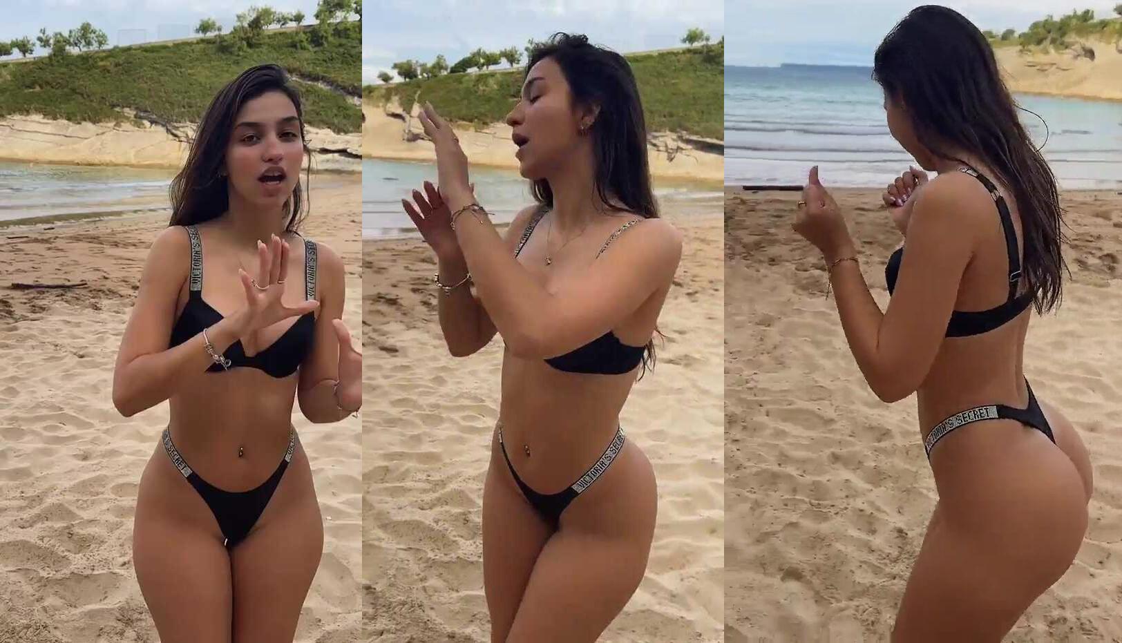 Sizzling Argentine beauty flaunting her curves on the beach. Watch her shake and pose in a tiny black bikini, showing off her luscious ass and toned body. Feel the heat as she teases with sultry moves and seductive glances. Get ready for a steamy beachside show!