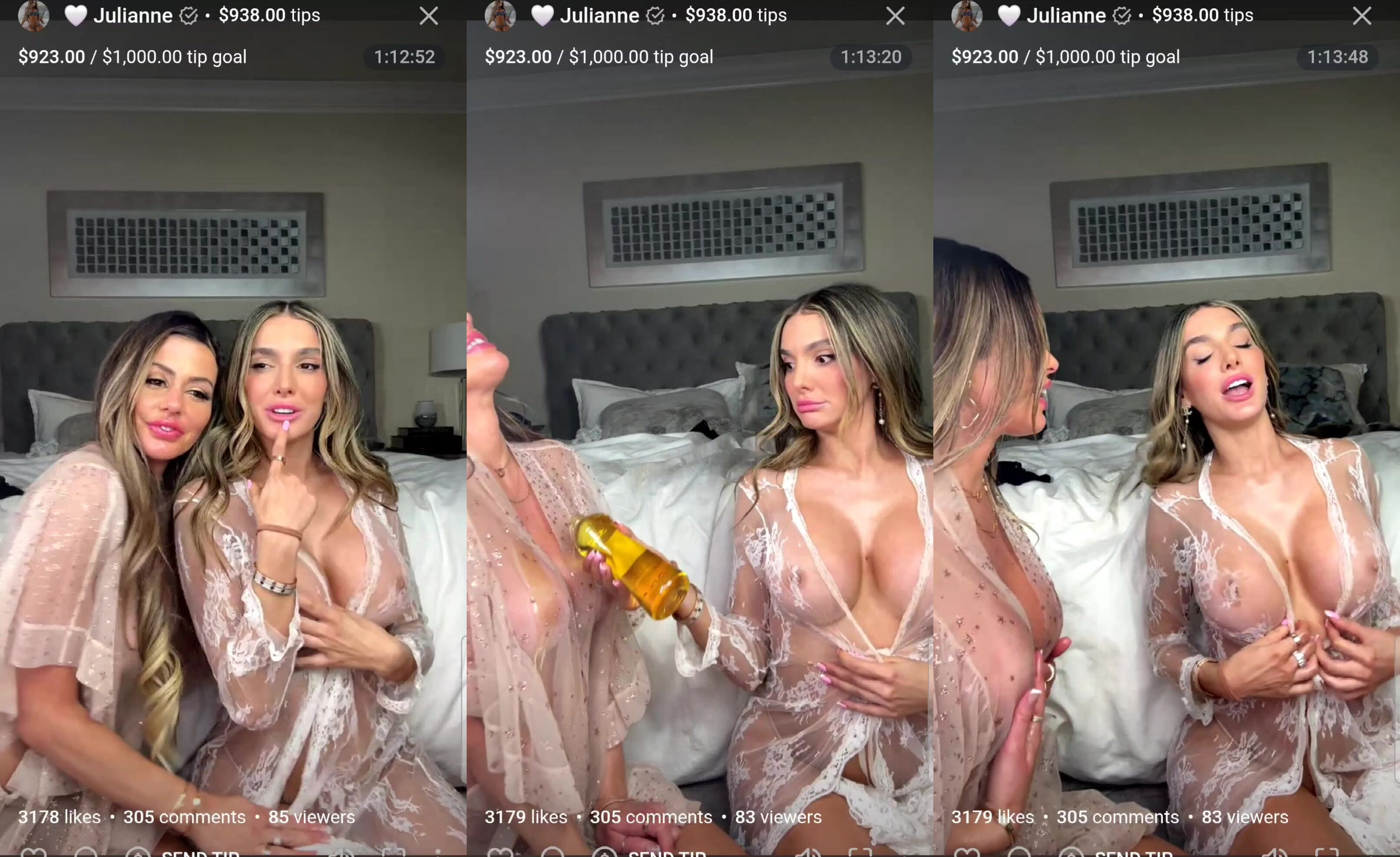 Julianne and her girlfriend tease in see-through lingerie during this steamy live stream video, showing their curves and having fun.