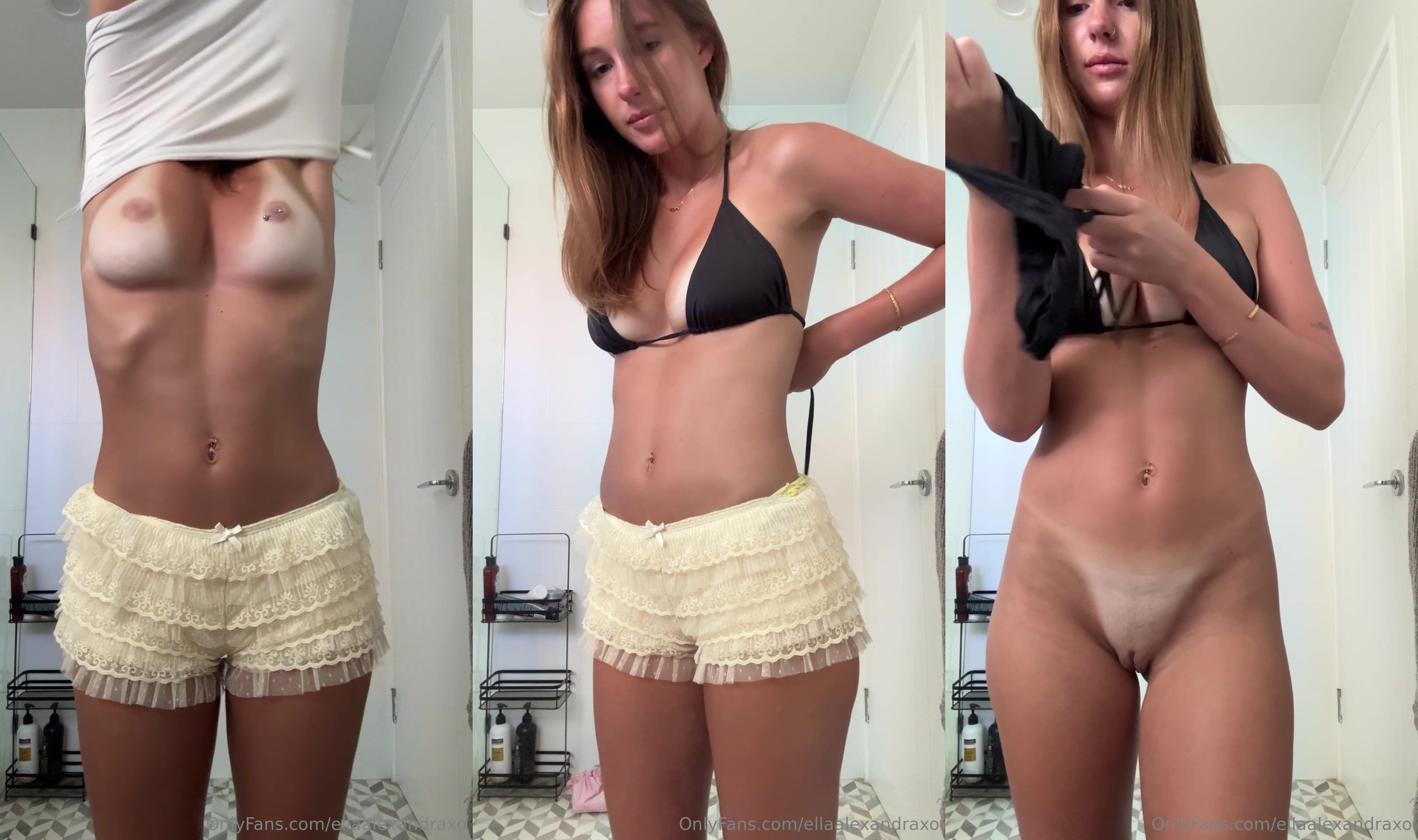 EllaAlexandraxo strips down in this video, showing off her fit body and black lingerie in front of the mirror.
