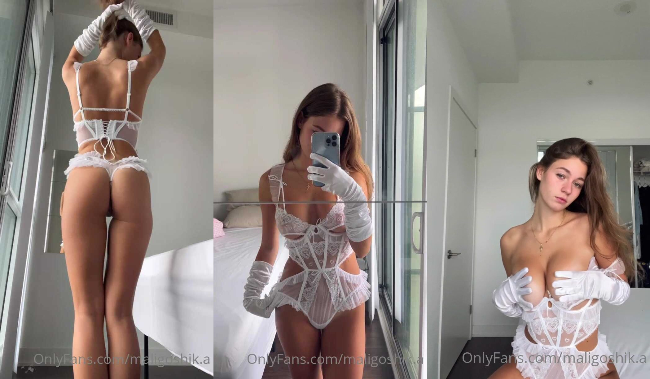 Petite cutie maligoshik.a stuns in white lingerie and gloves while teasing her perfect curves in this seductive OnlyFans video.