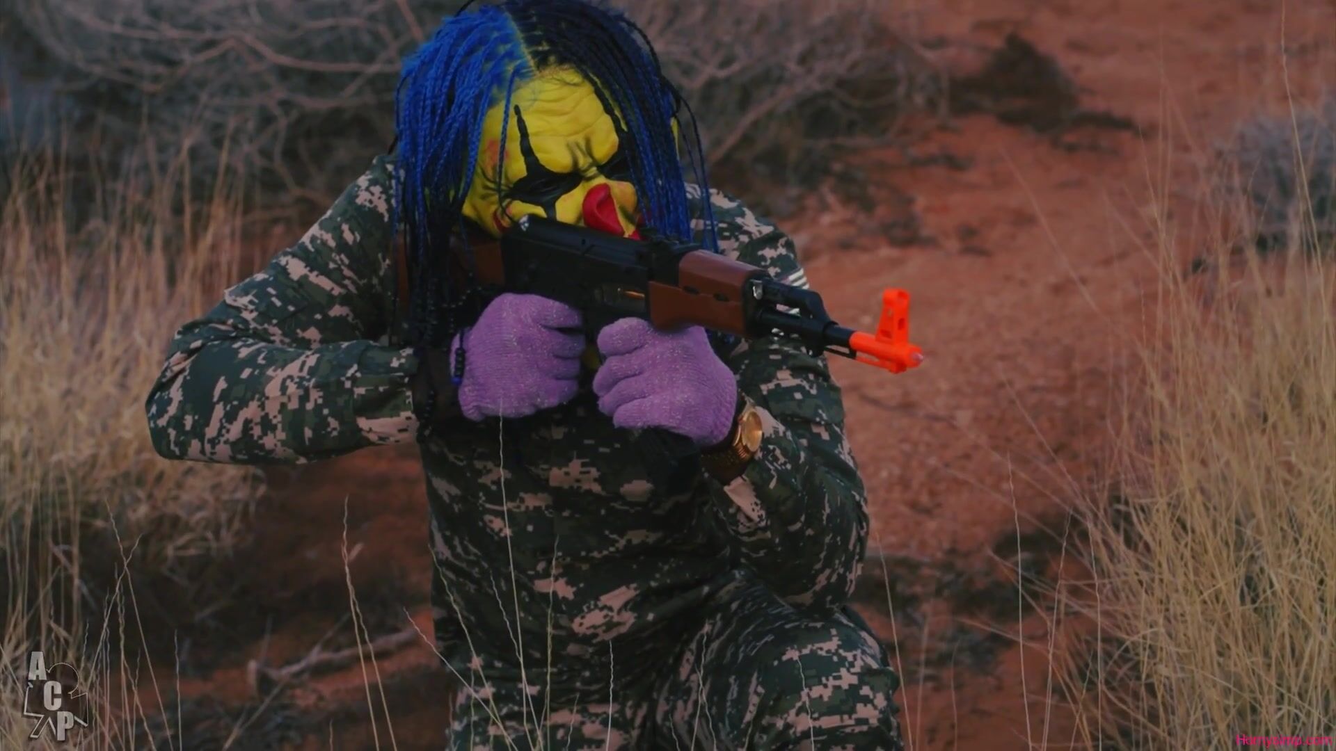 Drea Alexa teases bound and gagged in a kinky circus fuck fest video getting her tight pussy filled to the brim by Gibby the Clown.