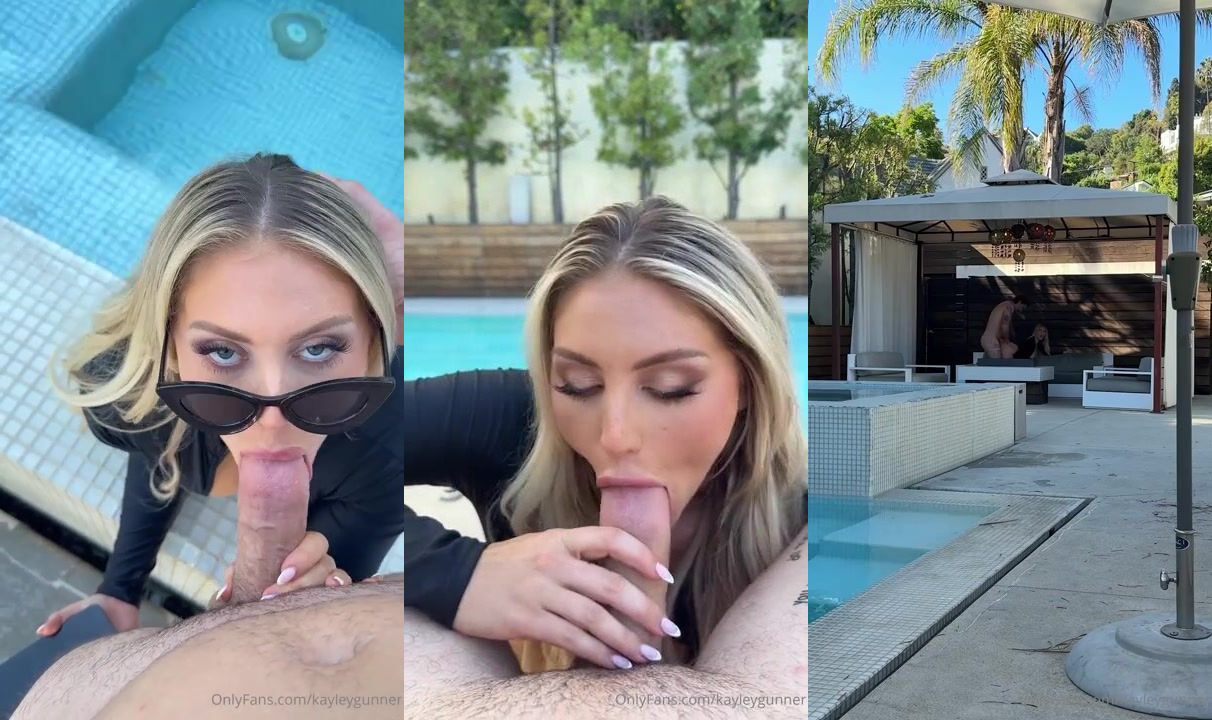 Kayley Gunner Teases With Sloppy Poolside Blowjob & Facial Video