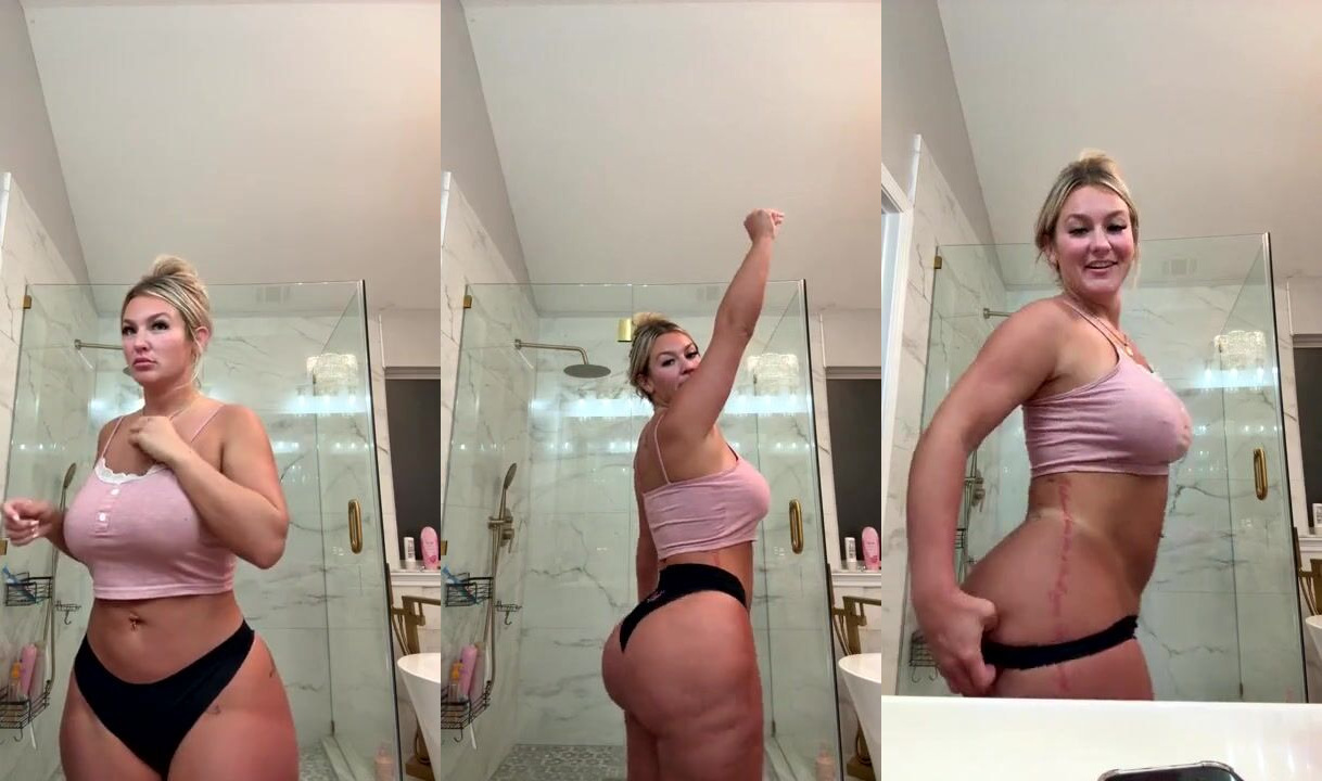 Milkmariedes Teases Her Curvy Body in Pink Lingerie During Live Stream Video